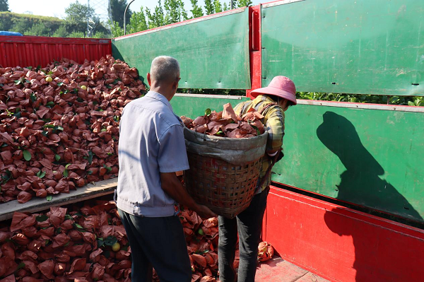 9月19日,在全安镇洪坝村600余亩的柠檬种植基地,一棵棵柠檬树枝繁叶茂,一颗颗圆润饱满、色泽诱人的果子挂满枝头,空气中弥漫着柠檬的清香。此时,村民们正背着背篓,拿着剪刀穿梭在其中,仔细挑选成熟的柠檬,进行采摘、装车,处处洋溢着丰收的喜悦。