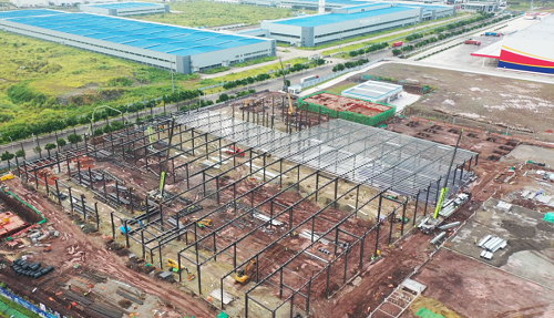 不远处,总投资105亿元的埃普诺年产30万吨硅碳负极新材料项目也即将进入试生产阶段。作为国内已正式启动的规模最大的硅碳负极新材料生产基地项目,也是内江近年来第一个单个投资超100亿元的制造业项目,该项目分两期建设,总用地约300亩,主要生产最新的硅碳负极新材料,产品广泛应用于新能源、汽车和储能等领域。