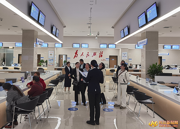 ▲代表们在内江高新区政务服务中心,零距离体验窗口工作流程和审批服务举措