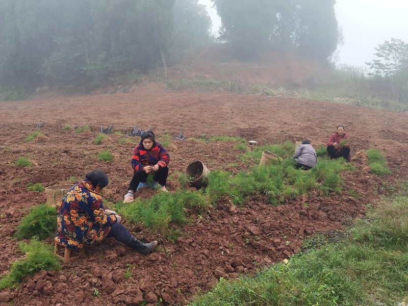 11月22日,在内江市东兴区顺河镇花祠村的天冬种苗选育繁育基地里,上百亩天冬苗郁郁葱葱,村民们正在基地里忙着采挖天冬苗,再按照种苗的粗细长短进行分类整装……