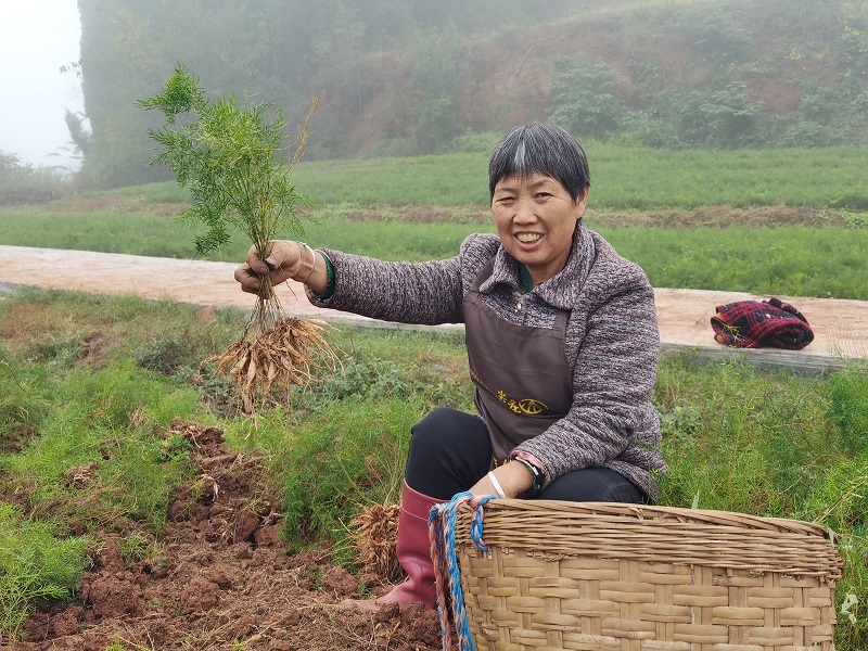 “内江天冬”是四川86种道地药材之一,东兴区是“内江天冬”的主要产区,获得“国家地理标志证明商标”。近年来,内江市东兴区大力发展以道地药材“内江天冬”为主导的中医药大健康产业,因地制宜探索联农带农机制,通过“企业+合作社+农户”模式,带动5000余户农户参与中药材种植,户年均增收超过2万元。(图片来源:李永琴/摄)